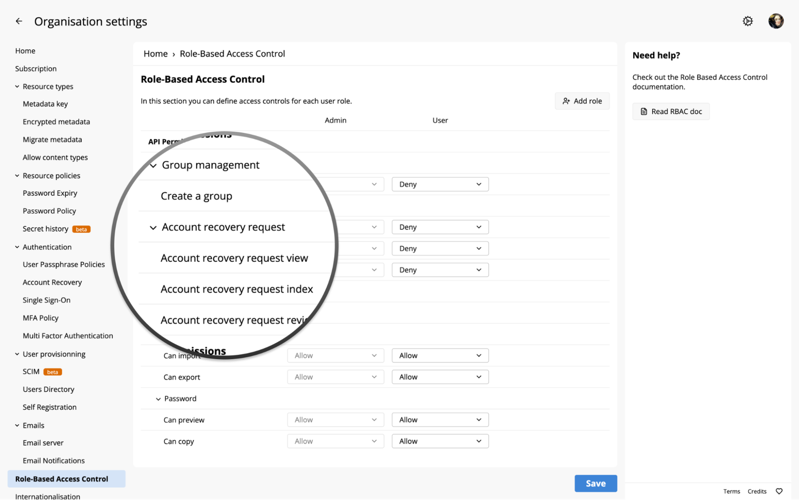 Extended RBAC capabilities with dynamic role management and drag & drop user assignment to groups.