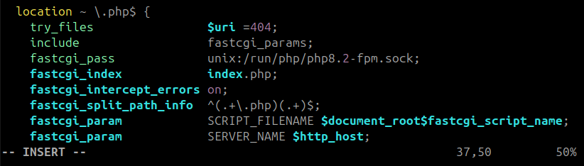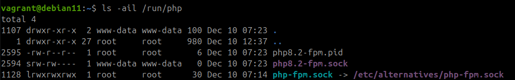 Before adjusting NGINX configuration, it is important to confirm the installed PHP version. In this article, we are using Debian, the latest version is coming with PHP 8.2, but if you are upgrading Ubuntu to the latest version e.g., Ubuntu Noble, the PHP version should be PHP 8.3 so this is why it’s very important to double check before updating the configuration file. This can be done for example by running ls -ail /run/php on the terminal, it provides the current php-fpm sock version.