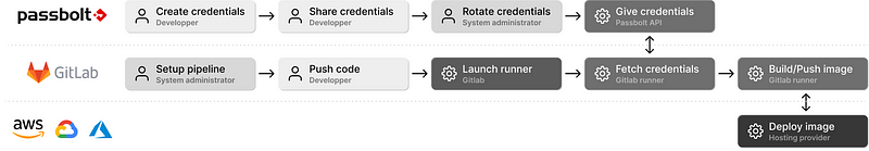 Gitlab CI variables are cool, but we’re trying to move away from storing secrets in clear there. Indeed by using CI variables we’re almost back to square one, with only the additional ability to shut off the attacker by deleting the user in passbolt. Functionally also we can now rotate secrets directly in passbolt, which is nice.