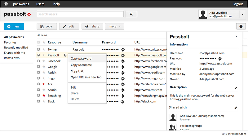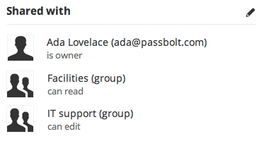 The only notable change in the password workspace is the “shared with” section of the sidebar when an item is selected, this section also shows which groups have access.