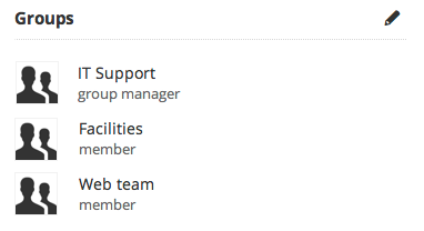 Similar to the password entry, when a user record is selected in the user workspace, that users group memberships will be shown in the sidebar.