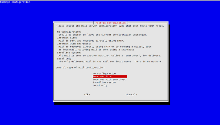$ sudo apt-get install postfix libsasl2-modules