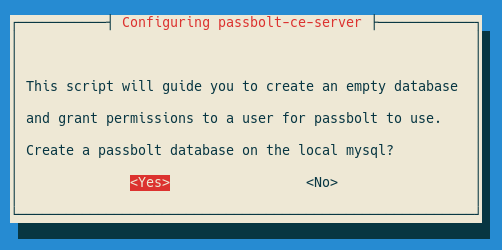 $ printf ‘passbolt-ce-server passbolt/mysql-configuration select No’ | debconf-set-selections