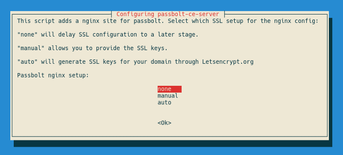 $ printf ‘passbolt-ce-server passbolt/nginx-configuration-three-choices select auto’ | debconf-set-selections