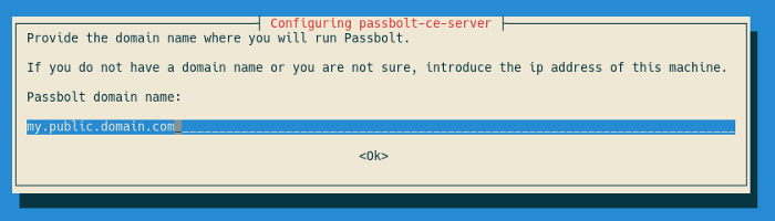 $ printf ‘passbolt-ce-server passbolt/nginx-domain string my.public.domain.com’ | debconf-set-selections