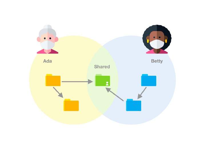 So how do you represent information when you instead embrace a more flexible, personalized approach where not everyone is forced to follow the same structure? We have decided that Passbolt should allow collaboration at the intersection of what two or more users can see, while still maintaining users’ individual control on items that are not shared.