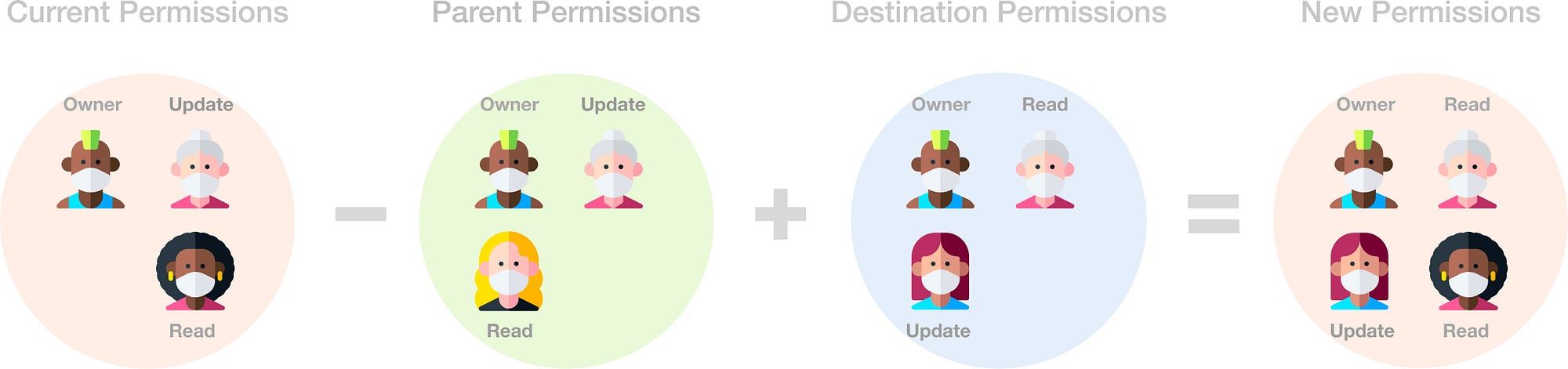So, how do we allow creating a set of permissions in the parent directory that is applied to the items enclosed in it, but not set in stone? What happens when we move the folder to another folder with another set of permissions?