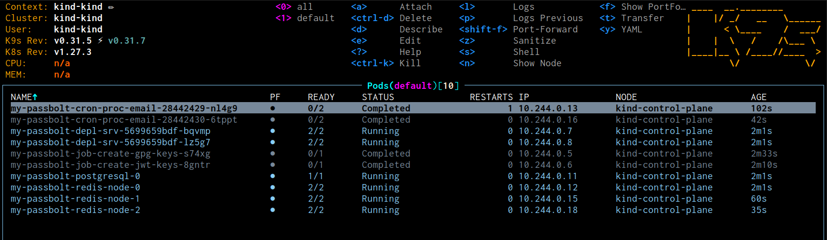 Look for your Passbolt pod and PostgreSQL pod to be in a Running state.