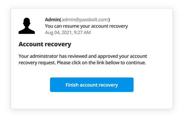 Once an administrator approves Betty’s account recovery, she’ll receive an email to resume the account recovery process: