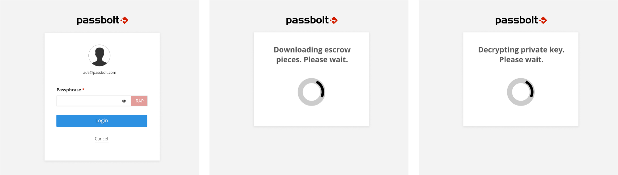 Then a loading spinner indicates that Betty has to wait because private key pieces are being downloaded and decrypted;