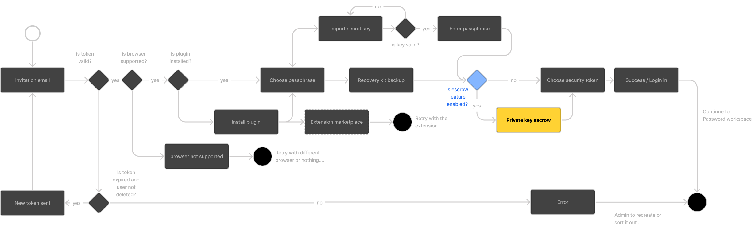 As you can see in the flow, in the account recovery, only one new step is inserted if the “Private Key Recovery” feature is enabled. This new screen appears right after the secret key backup step or the import step.