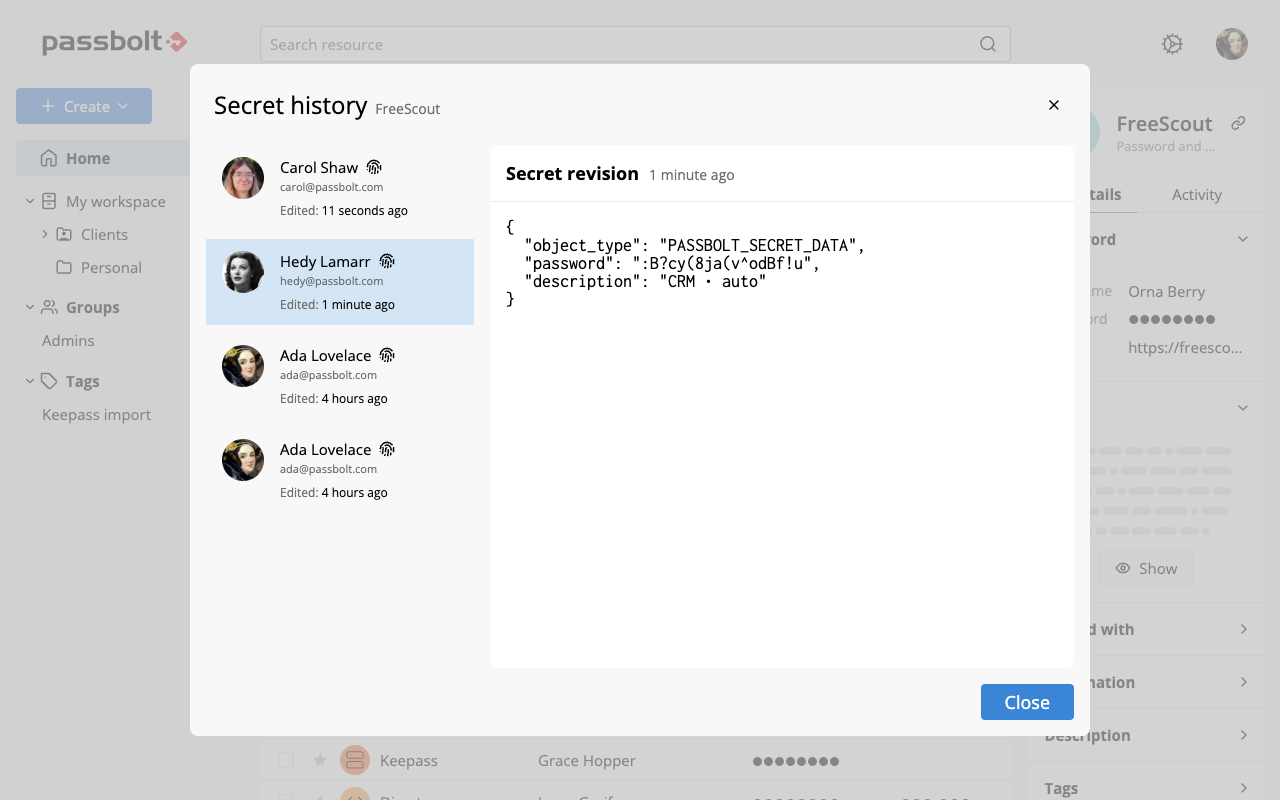 It is now possible to access previous revisions of a secret directly from Passbolt.