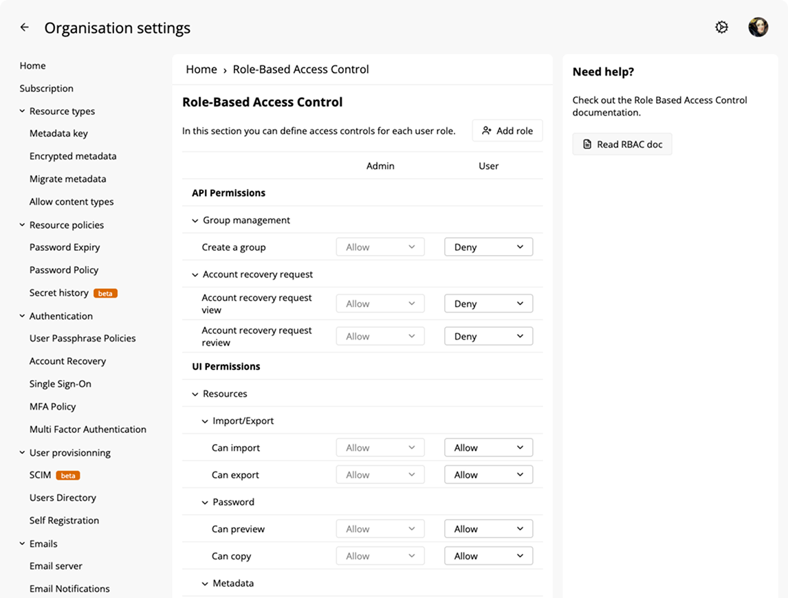 • The Admin role, by contrast, always retains access to all capabilities and cannot be restricted.
